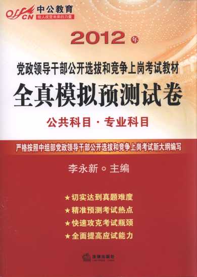 書名:2012年黨政領導干部公開選拔和競爭上崗考試教材:全真模擬預測試卷(公共科目.專業(yè)科目)(中公教育)