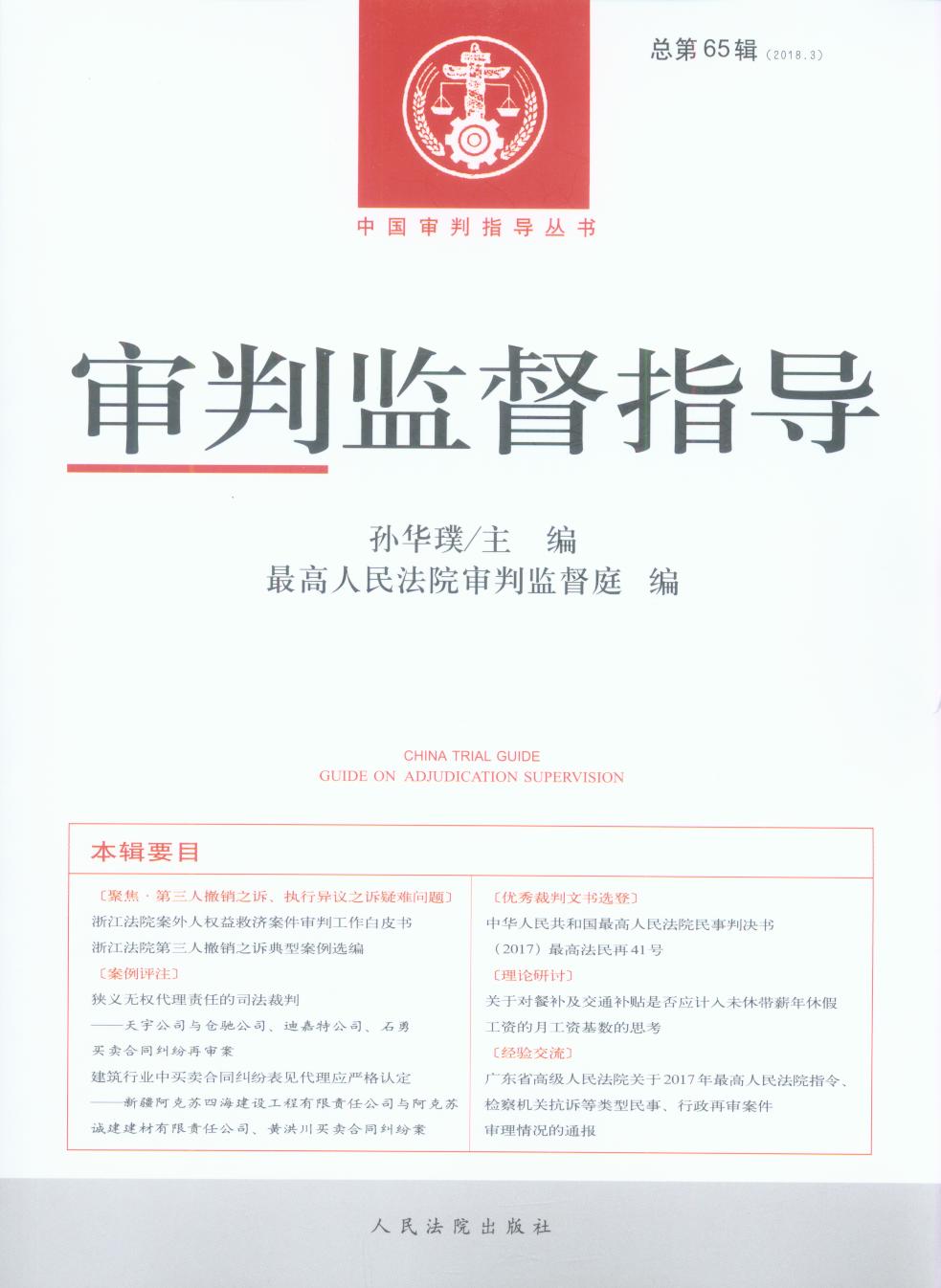 • 審判監(jiān)督指導·2018年第3輯(總第65輯)